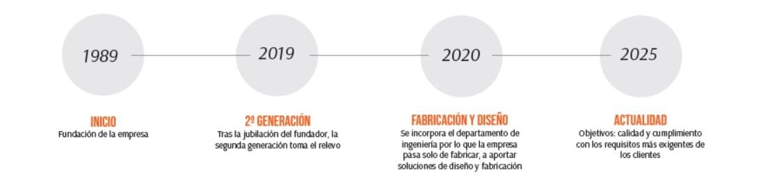 Fundada en el año 1989, nace como un taller de fabricación mecánica. En el año 2019, la segunda generación familiar asume la gerencia de la empresa.